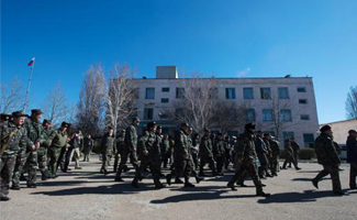 A Russian military officer then went inside the building to negotiate with the Ukrainians as the crowd of protesters were told to leave. Several dozen soldiers were later seen walking out of the base, leaving it empty, with Russian soldiers standing outside.