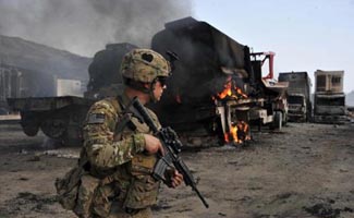Taliban attackers set NATO vehicles ablaze on Afghan border