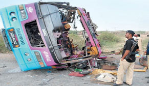 Road accident claims two lives, 16 recieve injuries