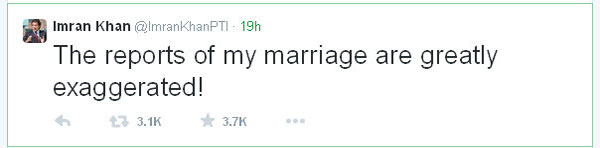 Meanwhile, Imran Khan himself in message on social media said, the reports of his marriage were 'greatly exaggerated'.