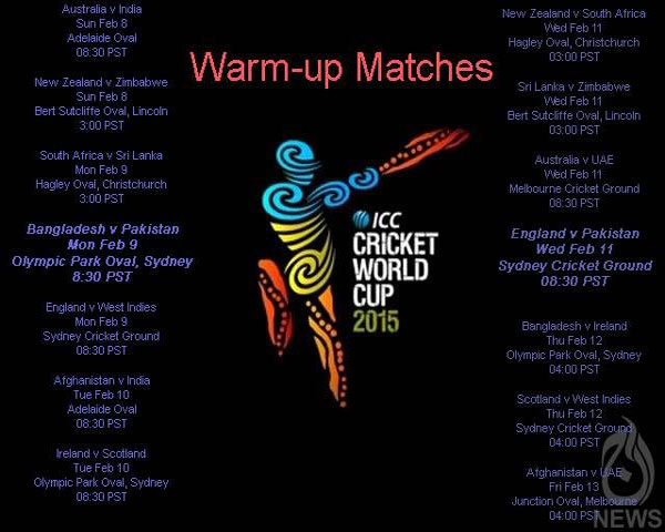 DUBAI: International cricket council has been announced world cup 2015 warm up matches on January 22, Aaj News reported.