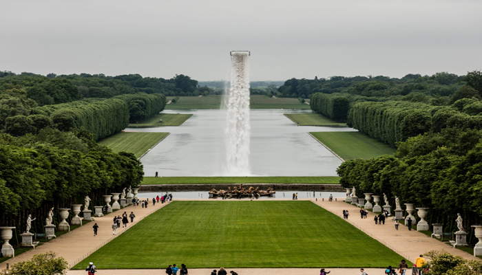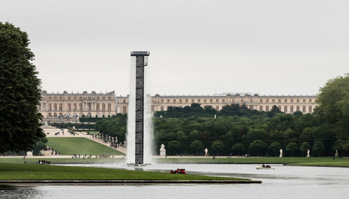 Danish-Icelandic artist, Olafur Eliasson installed several large-scale pieces in and around the iconic French palace — most notably a towering waterfall that seems to cascade from nowhere in the middle of the sprawling gardens.
