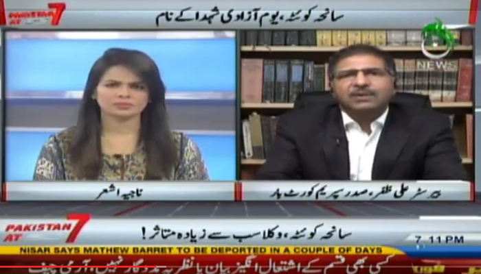 Pakistan At 7 - 12th August 2016 Farah Jamil 13 Aug, 2016 Videos Hafiz Naeem-ur-Rehman JI and Barrister Ali Zafar President SCBA in fresh episode of Pakistan At 7 on Aaj News and talk with Najia Ashar. https://youtu.be/cBZ7A9rlHnw Facebook Twitter Whatsapp Comments Related Stories NFC War! Is the 18th Amendment Weakening Pakistan? The Failure of Local Governments - Dus The Future of PTI and the Minus-One Formula | Exclusive Interview with Qadir Khan Mandokhel | Dus PTI Lawyers Stir Controversy | Sher Afzal Reacts | Legal & Political Drama | 11PM Aaj News Headlines Gen. Faiz Hameed Court Martial: The May 9th Investigation & Major Political Fallout - Dus Karachi Mayor Proposes Solutions for City Issues | Urban Development Update Rajab butt ki Big brother say deal? - NHQ - Aaj News Comments are closed on this story. Comments Taboola Taboola ads will show in this div Most Popular Here is full list of Rs200 prize bond winners for December 15, 2025 draw UN report backs Pakistan on Afghan terror sanctuaries: FO Pakistan Navy launches fourth Hangor-class submarine Ghazi in China Here is full list of Rs200 prize bond winners for December 15, 2025 draw UN report backs Pakistan on Afghan terror sanctuaries: FO Pakistan Navy launches fourth Hangor-class submarine Ghazi in China Latest Pakistan summons Afghan deputy envoy over North Waziristan terror attack Four soldiers martyred, four terrorists killed in North Waziristan India’s manipulation of water ‘threatens regional stability’