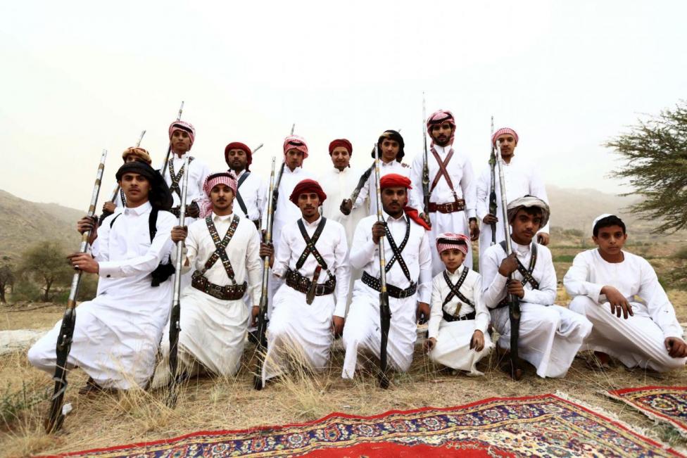 Men pose for a photo during a traditional excursion near the western Saudi city of Taif, August. REUTERS