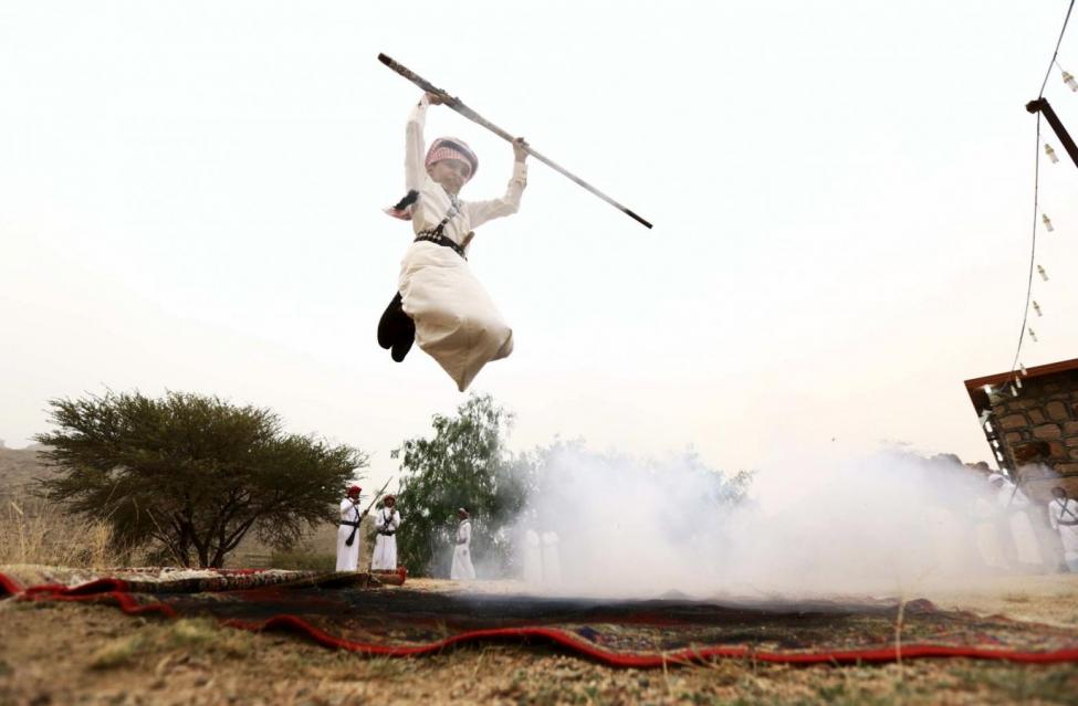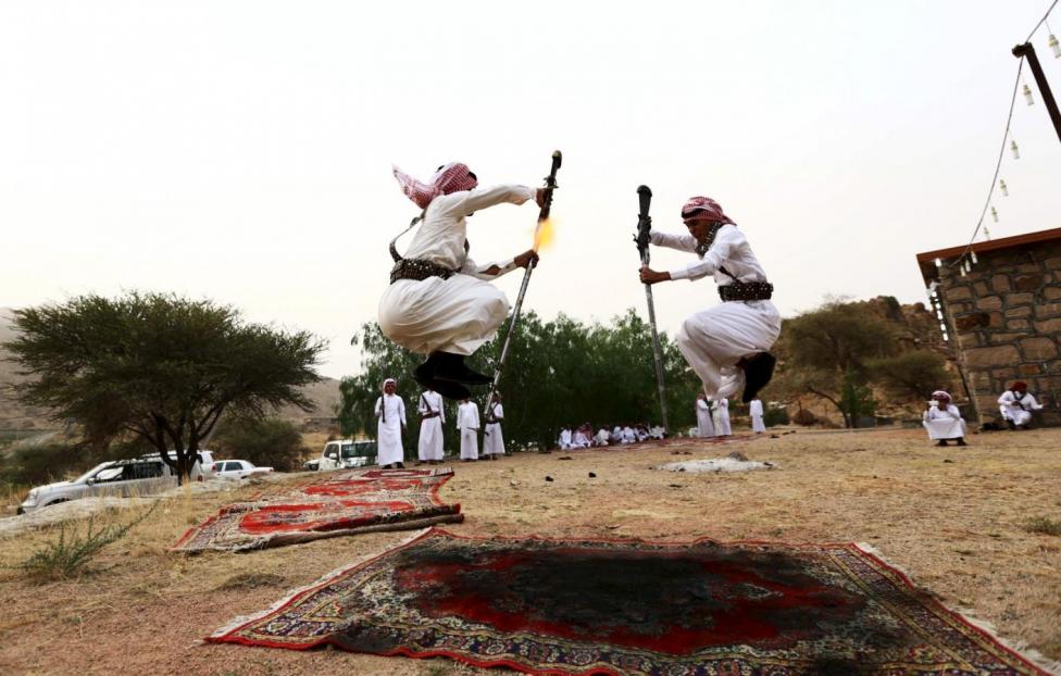 Men dance during a traditional excursion near the western Saudi city of Taif. REUTERS