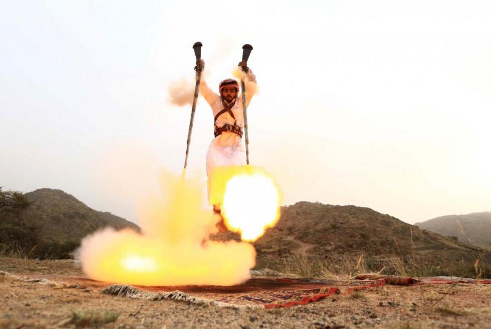 A man fires weapons as he dances during a traditional excursion near the western Saudi city of Taif. REUTERS
