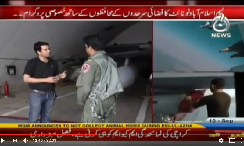 AVM Aamir Masood Base Commander PAF, Squadron Leader Hassan Mahmood Siddiqui PAF, Squadron Leader Umar Bin Tahir PAF, Squadron Leader Muhammad Shiblan Iqbal PAF, Wing Commander Haider Shahbaz PAF, Flight Commander Syed Nabeel Masood PAF, Flight Commander Qambar Ali Shah PAF and Squadron Leader Muhammad Sufyan PAF in fresh episode of Islamabad Tonight on Aaj News and talk with Rehman Azhar.