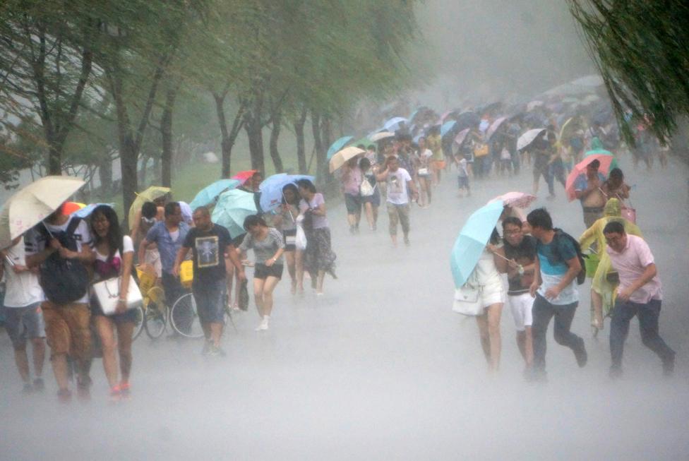 People hold umbrellas as Typhoon Soudelor approaches China's Zhejiang province,REUTERS