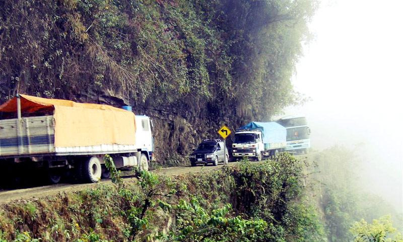 North-Yungas-Road,-Bolivia- File PhotoNorth Yungas Road, Bolivia: Also known as the “Road of Death†in the Yungas region of Bolivia. It is legendary for its extreme danger and the Inter-American Development Bank christened it as the “world’s most dangerous roadâ€.