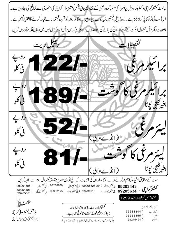Disclaimer: The price list is taken from commisioner Karachi’s website. Aaj Web team is not responsible for any dispute regarding prices.