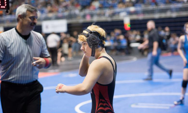 The wrestler at Trinity High School in the Dallas suburb of Euless had a 52-0 record ahead of the tournament and is the favorite to win his 110-pound weight class in the girl's championship, which ends on Saturday.