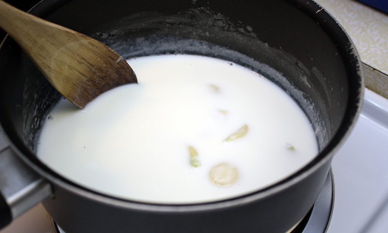 Garlic contains iron, vitamin A, C, D, B6 and B12, calcium, fiber, manganese, selenium, copper and potassium. It has zero cholesterol. On the other hand, milk is a loaded with calcium, vitamin A, C, D, and B12, potassium, magnesium and iron. Regular consumption of milk helps maintain normal blood pressure, build strong bones, improves eyesight, repairs muscle tissues, gives energy, enhances the production of red blood cell and boosts immune system.