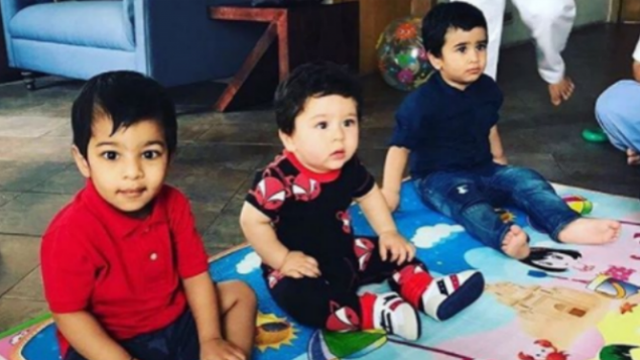 Tusshar's son Lakssya and Taimur Ali Khan along with another child can be seen in the photo shared by Tusshar Kapoor and he captioned it "Three's company #playdate #nurseryrhymes #thewheelsonthebuss #johnyjohnyyespapa".