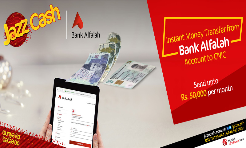 The service known as ‘Pay Anyone’will enable people across Pakistan to collect funds sent on their CNIC from JazzCash agents. The service allows Bank Alfalah customers to transfer upto PKR 50,000monthly.