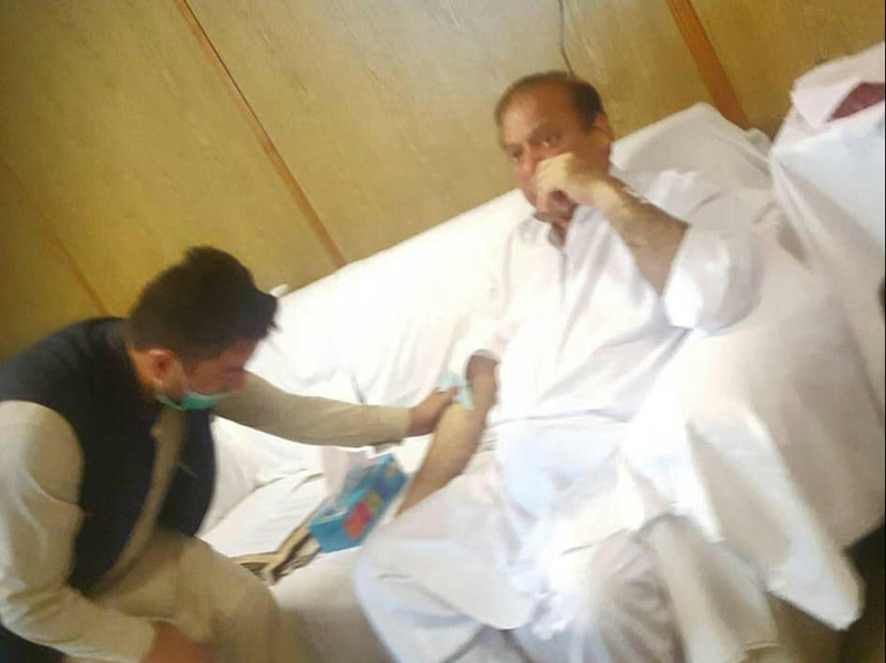 Photo of Nawaz Sharif under treatment at Services Hospital surfaces