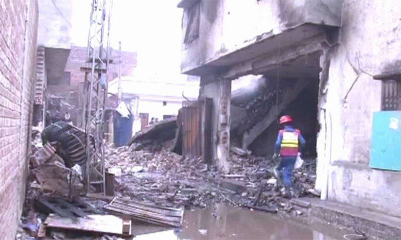 —APP PhotoLAHORE: Eleven persons including labourers,a woman and two children were killed, while two others suffered burn injuries in a cylinder blast in deodrants factory at Imamia colony Shahdara during wee hours.