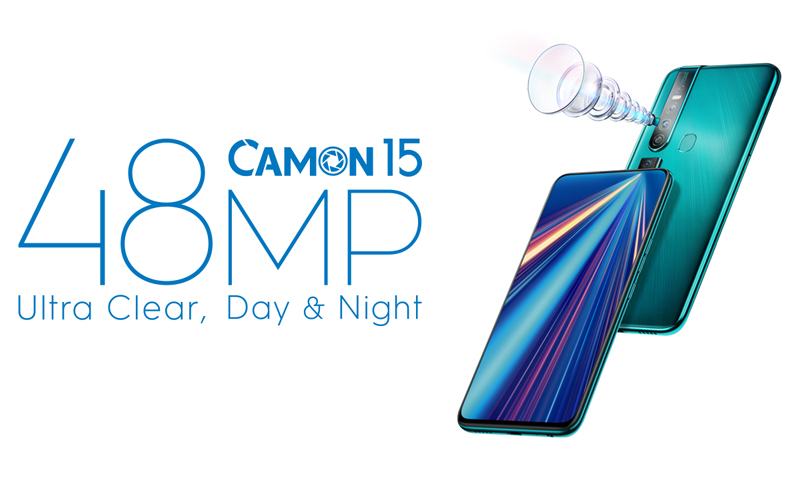 Camon 15 is equipped with 48 MP Quad camera, Night lens perfect for night photography, 32 MP pop-up selfie cameraand advanced specs includes TAVIOS artificial technology.
