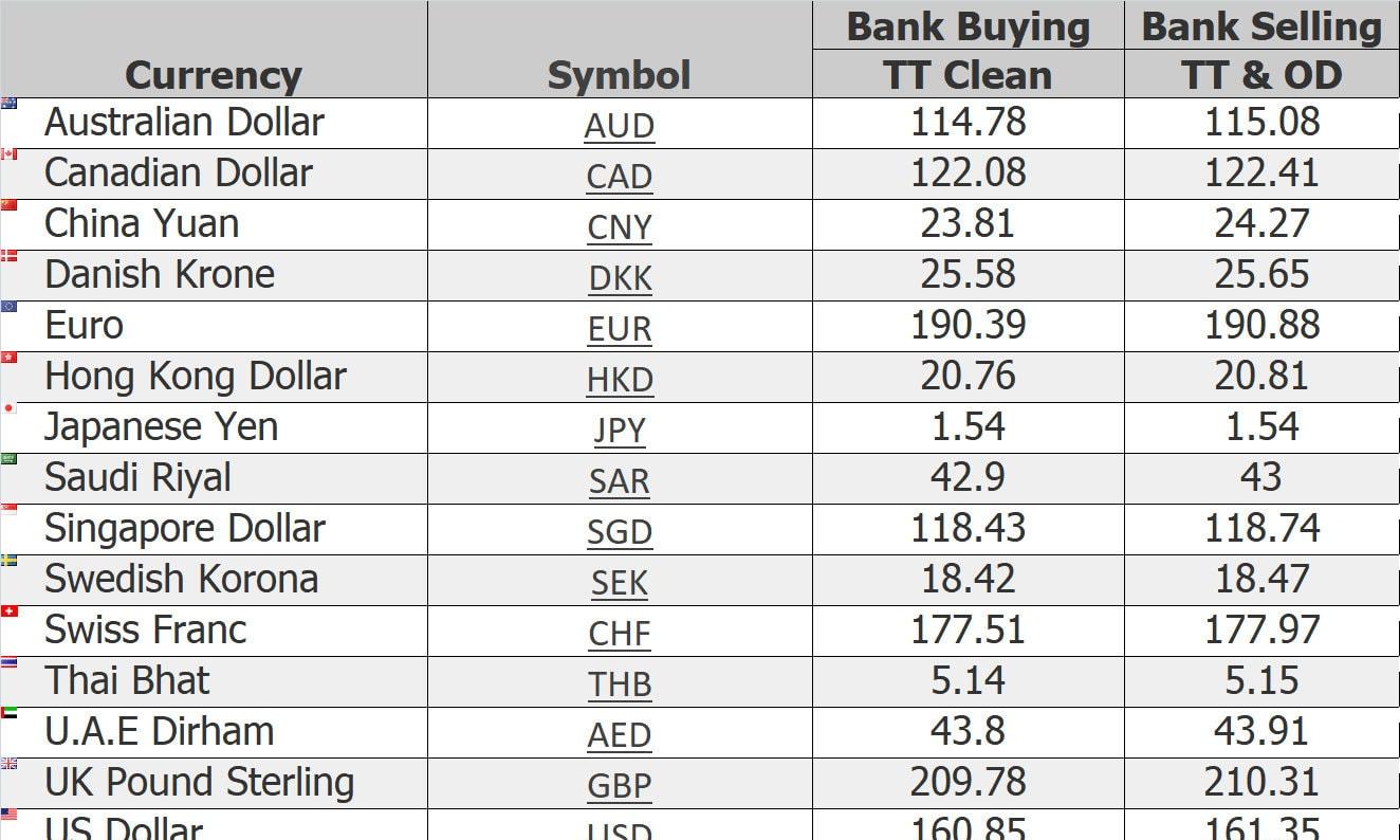 Interbank USD to PKR is: PKR 161.4 Interbank UAE Dirham to PKR is: PKR 43.94 Interbank Saudi Riyal to PKR is: PKR 43.08 Interbank UK Pound to PKR is: PKR 210.4