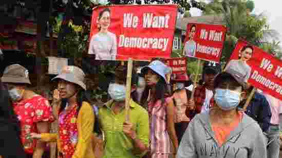 Despite the killing of more than 550 people by the security forces since the Feb. 1 coup, protesters are coming out every day, often in smaller groups in smaller towns, to voice opposition to the reimposition of military rule.