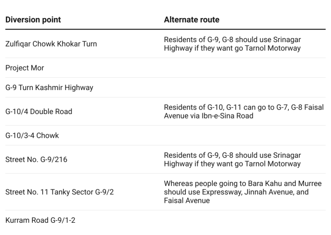 Traffic plan for Muharram 8 processions in Islamabad’s Karachi Company area. Photo via Twitter/@ICT_Police