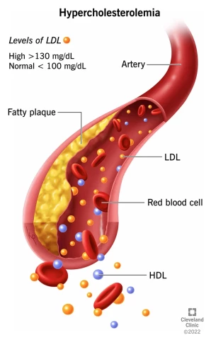 If you have FH, you have a lipid disorder in which your bad cholesterol or low-density lipoprotein (LDL) is too high. This makes fat collect in your arteries (atherosclerosis), which puts you at a higher risk of heart attack and stroke. It is disorder that is passed down through families. The condition begins at birth and can cause heart attacks at an early age.