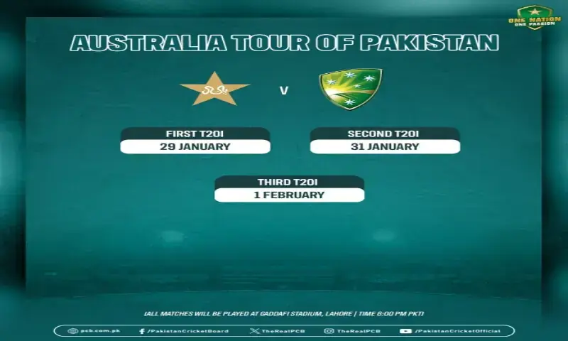 Pakistan will take on Australia in three T20Is on January 29, 31 and February 1 at the Gaddafi Stadium, Lahore. All three matches will begin at 6pm.