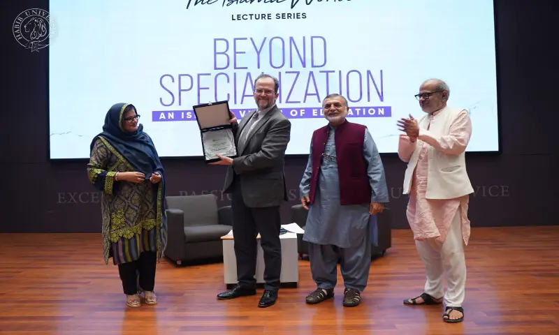 Dr Lumbard delivered “Beyond Specialisation: An Islamic Vision of Education,” the third lecture in Habib University’s Reshaping Philanthropy in the Islamic World Lecture Series, on Friday, January 16, 2026. The event drew Karachi’s intellectuals, civil society members, students, and faculty for a discussion on how Islamic knowledge traditions can help address key challenges in modern higher education.