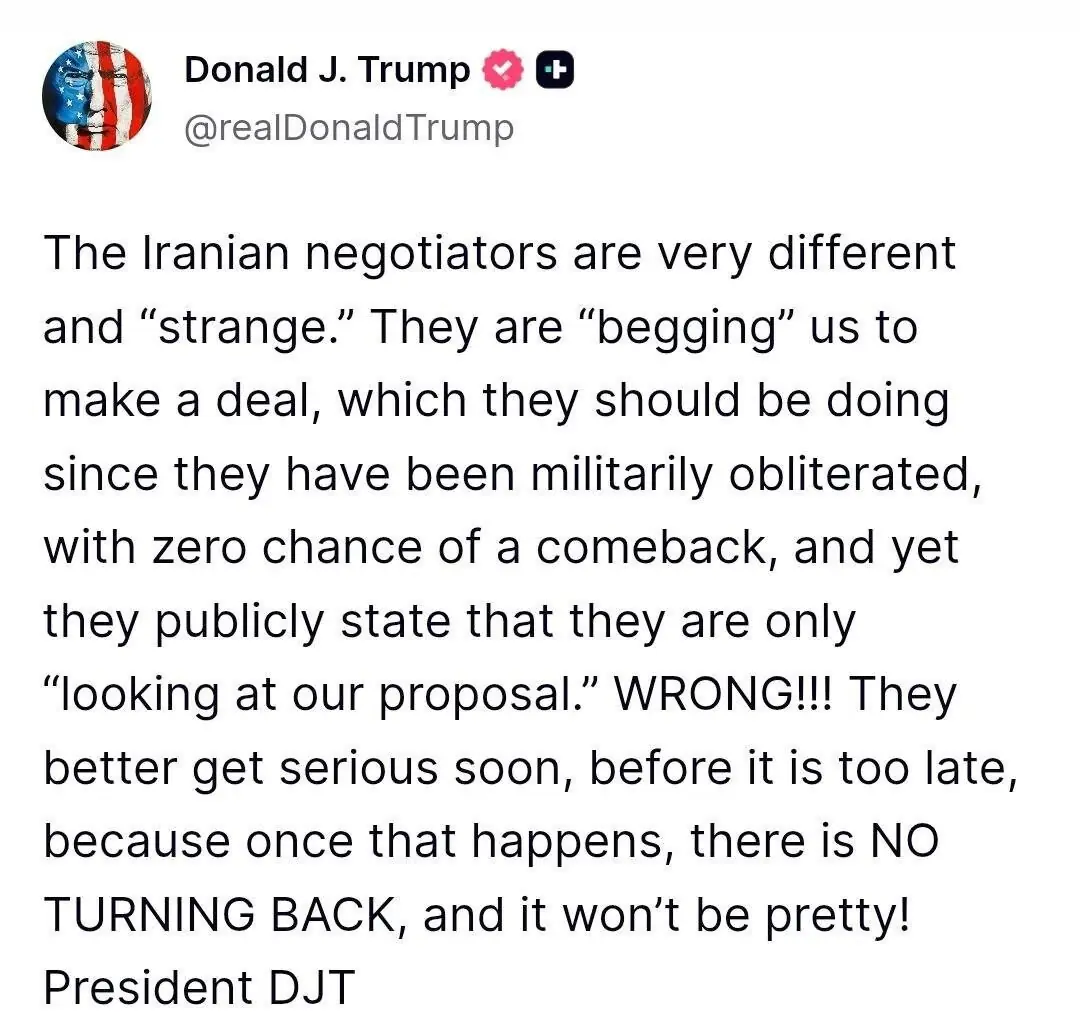 In a series of tweets on Thursday, Trump described the Iranian negotiators as “very different and strange” and said they publicly claim that they are merely “looking at our proposal”.
