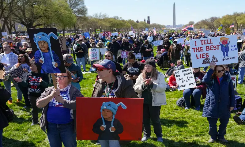 Demonstrators attend a “No Kings” protest against US President Donald Trump’s administration policies in Washington, DC. – Reuters