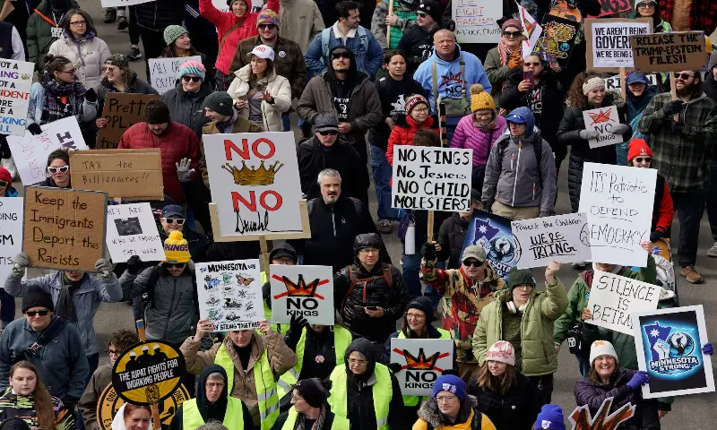 Massive protests against US President Donald Trump were held across the United States and beyond on Saturday, as millions of people vented their anger over what they see as his authoritarian bent and law-trampling governance. It is the third time in less than a year that Americans have taken to the streets as part of a grassroots movement called ‘No Kings’, the most vocal and visual conduit for opposition to Trump since he began his second term in January 2025.