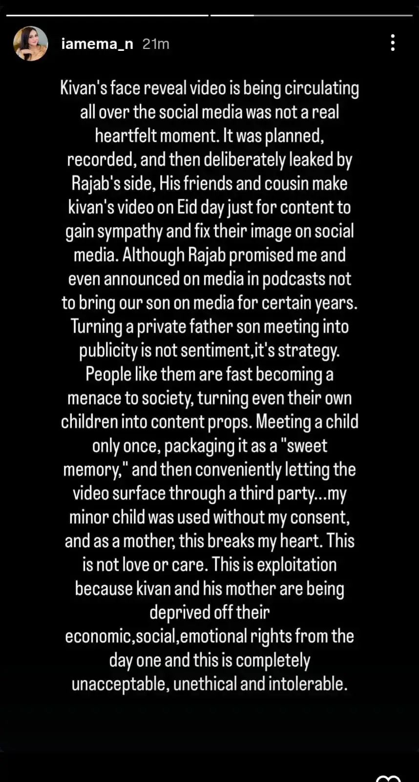 The video, widely circulated on social media as a “face reveal” of their son Kivan Sultan, has been rejected by Imaan Fatima, who claims it was neither spontaneous nor genuine.
