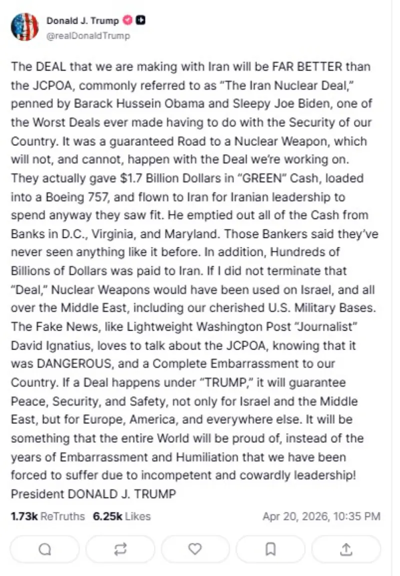 “The DEAL that we are making with Iran will be FAR BETTER than the JCPOA, commonly referred to as ‘The Iran Nuclear Deal,’” Trump wrote in a post on Truth Social.