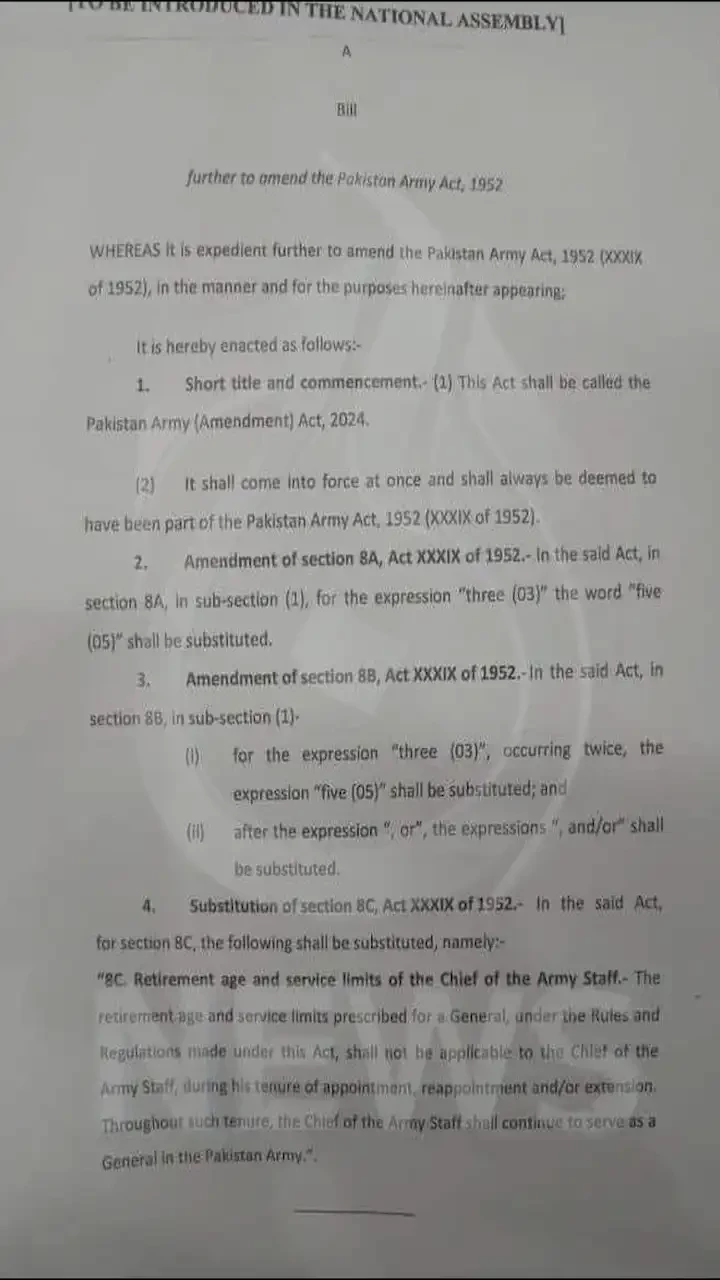 Defence Minister Khawaja Asif presents bill related to army, navy, and air force rules in the National Assembly on November 04, 2024. Screengrab via YouTube/PTV News